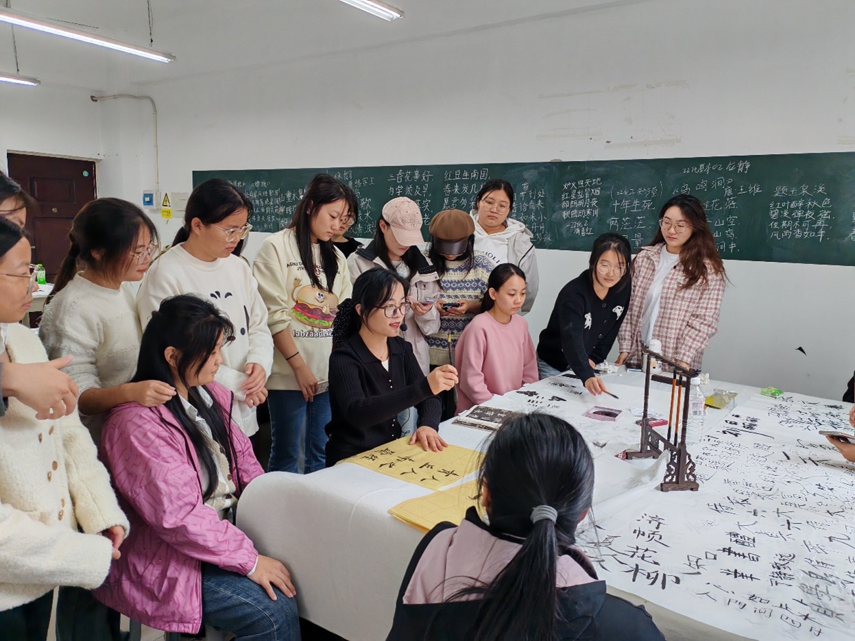 为了进一步提高师范生的教育教学基本技能,夯实专业基础,2024年11月5日—21日,化学专业组织2022级学生分组开展“三笔字训练”活动。本次活动邀请教育学院李鑫老师讲解和示范,帮助师范生更好地掌握钢笔字、粉笔字和毛笔字的书写技巧,提升学生的师范技能,为未来的教育事业做好充分准备。